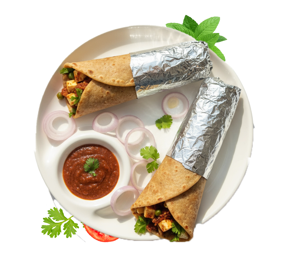 Soft paneer cubes grilled to perfection, wrapped in a warm roll that’s bursting with creamy spice.