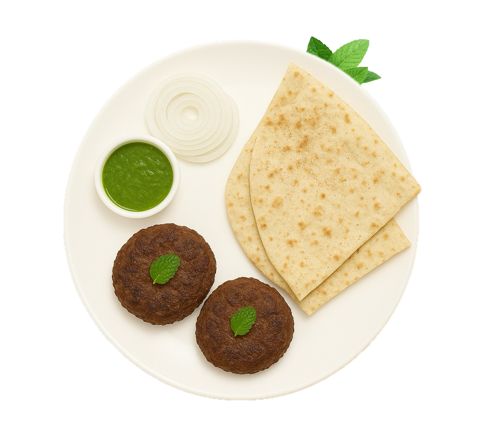 Soft chicken shami kebabs with delicate rumali roti, a light yet flavorful indulgence for any craving hour.