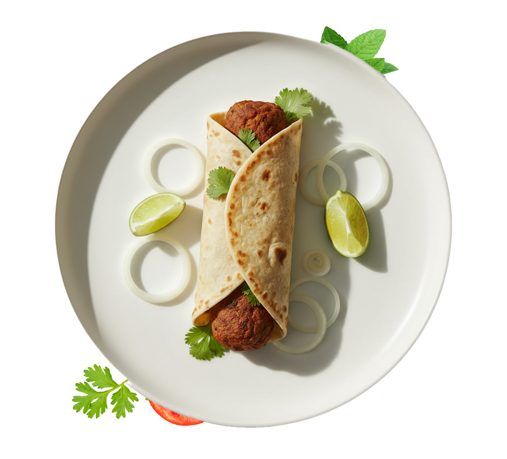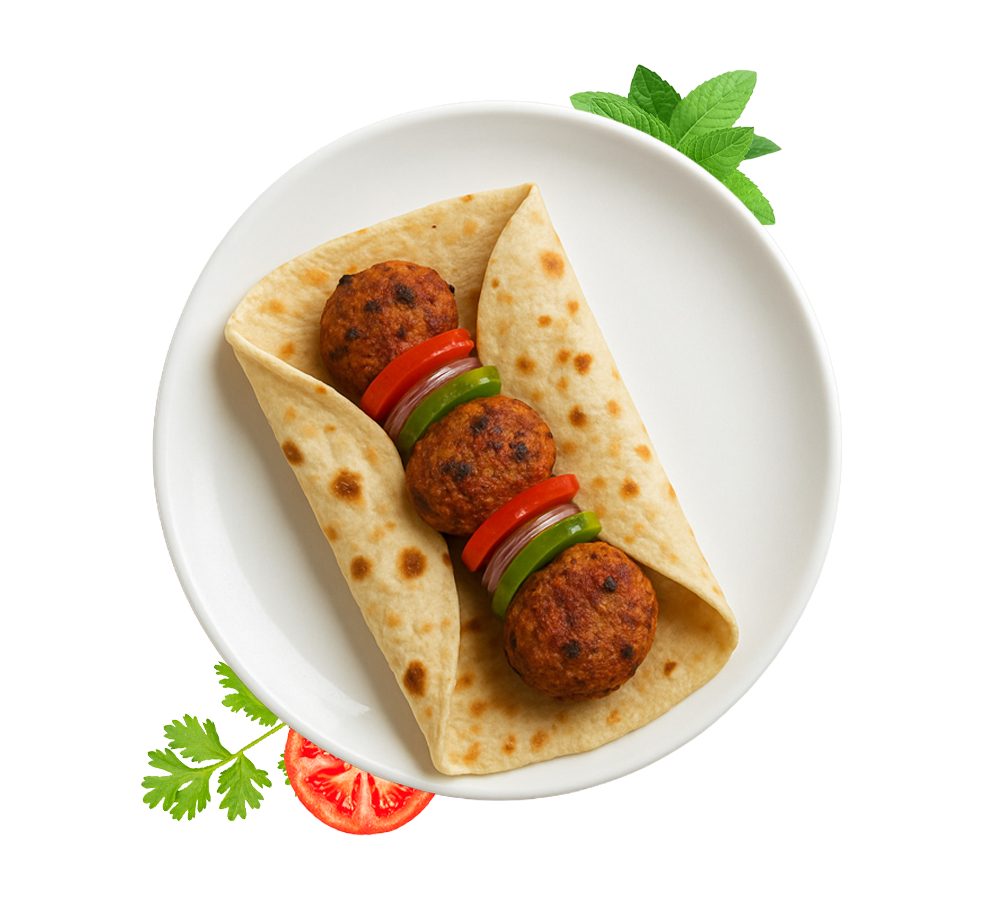 Juicy mutton kebabs wrapped in buttery, crisp parathasthe kind of indulgence that melts in your mouth and lingers in your memory.