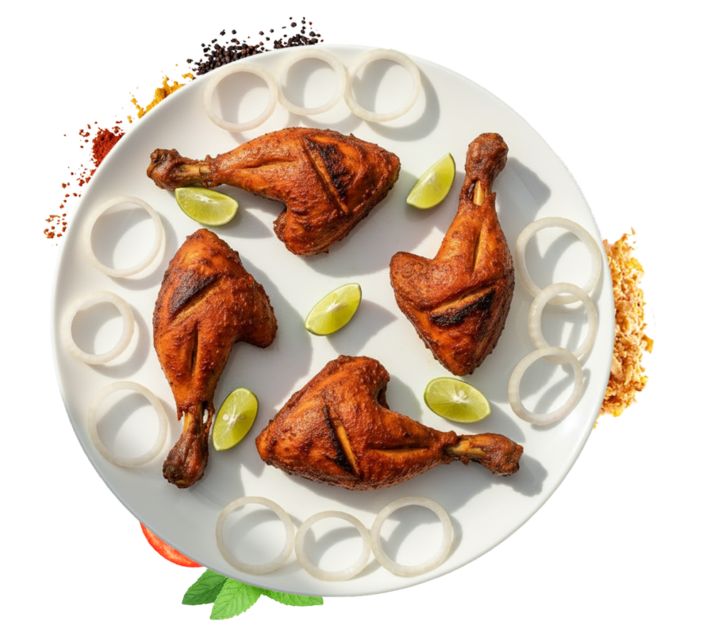 Smoky, char-grilled perfection, juicy chicken marinated in spices and roasted till golden and crisp.